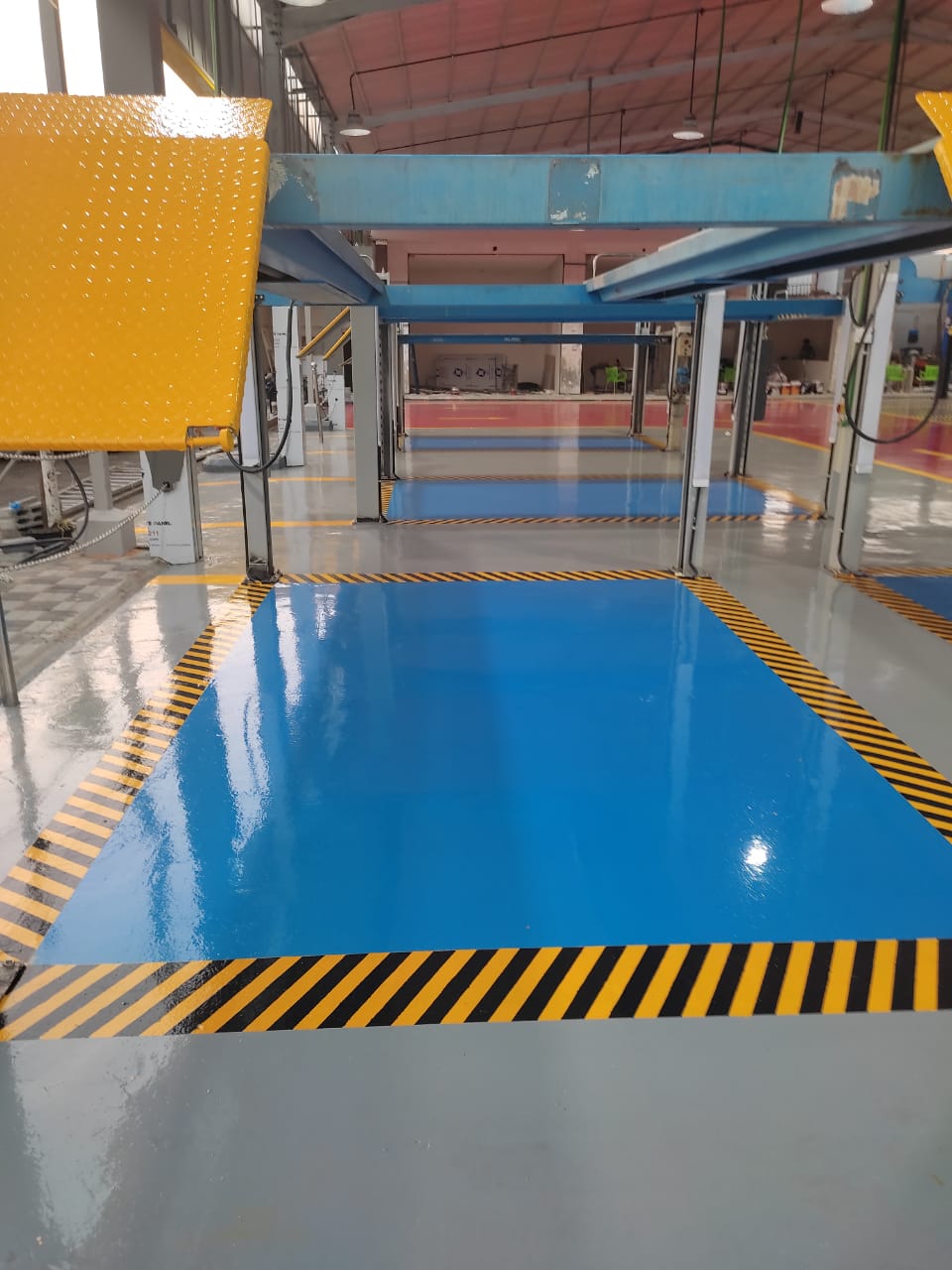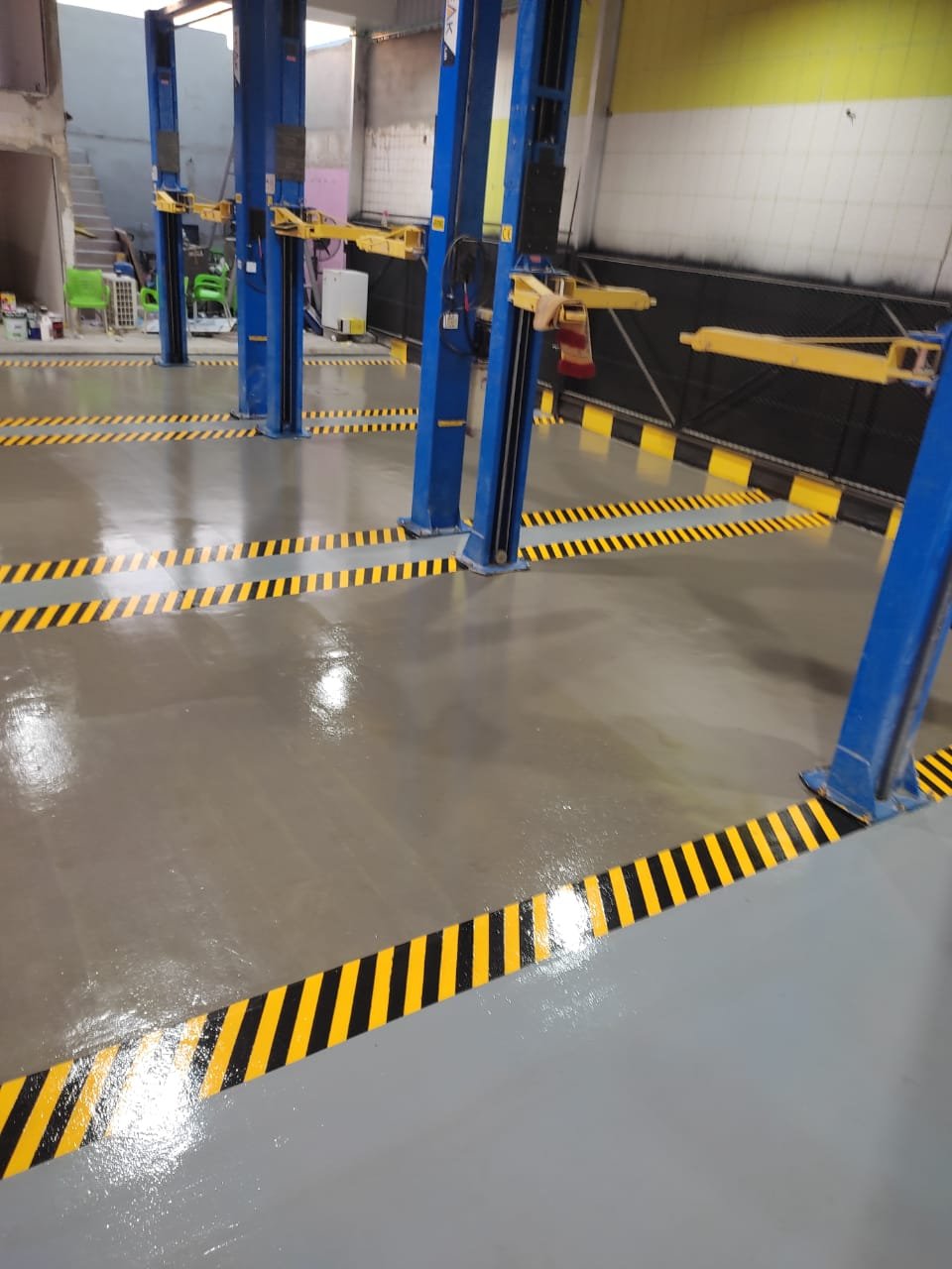 تتواجد في الاغلب بأرضيات المصانع و المستودعات و التي لابد و أن تمتاز بقوة تحمل أكبر ومستوى أفضل من الجودة و هو ما